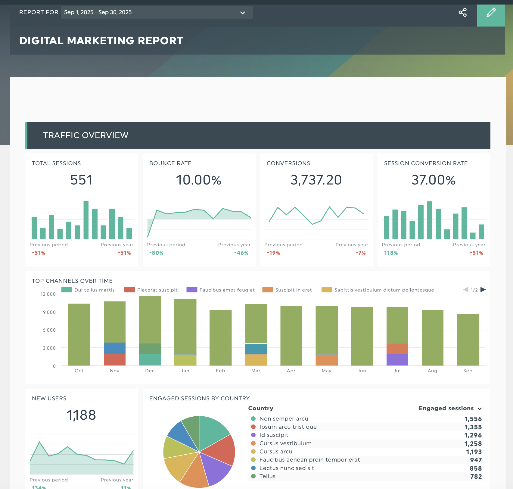 This way, your reports do more than display last month’s metrics. They provide a starting point for your analysis, either by highlighting opportunities in your data or by revealing urgent issues to prioritize in your strategic decision-making.