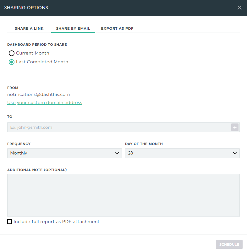 This lets you send the report on a pre-determined schedule. Anyone who receives it can view it in real-time.